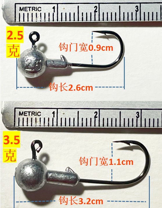 本款鱼钩搭配本站产品为“5厘米0.8克夜光/瓷白软饵”